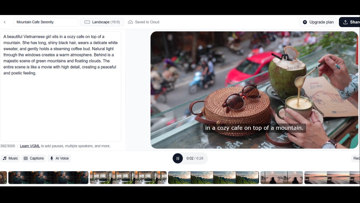 - Bước 3: Nhập nội dung văn bản cho video, thêm hình ảnh, hiệu ứng, âm nhạc từ thư viện tài nguyên của VideoGen AI.