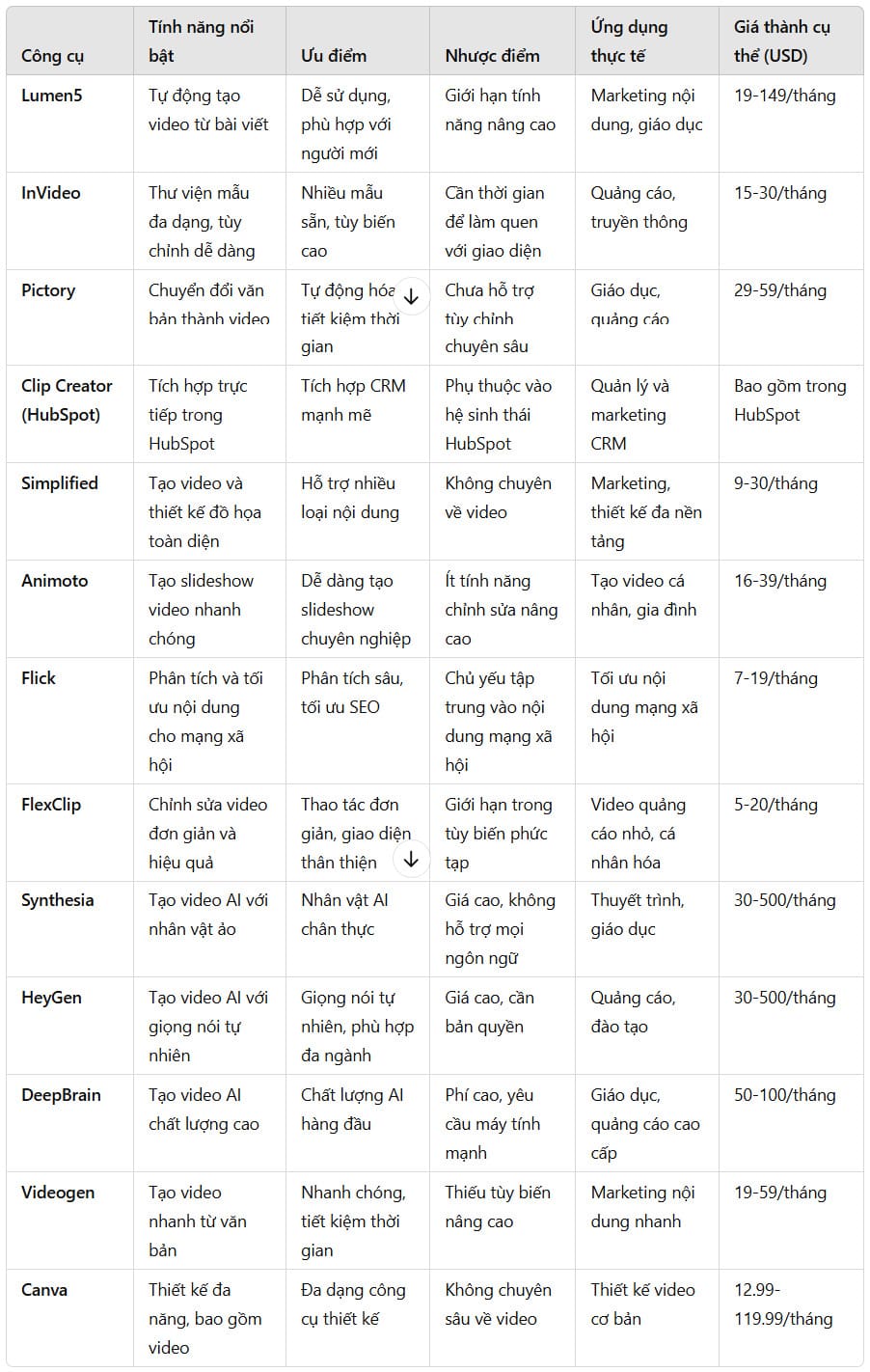 - Video tóm tắt nội dung: Chuyển đổi các bài viết blog thành video ngắn.