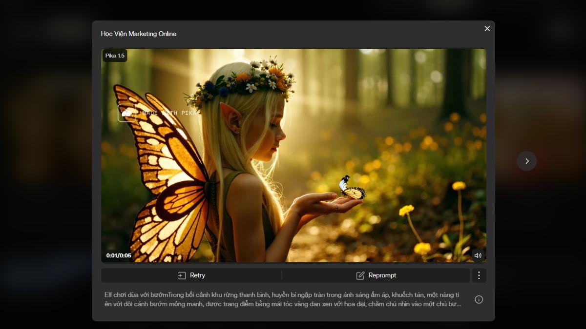 - Bước 2: Nhập mô tả nội dung video (prompt), tùy chỉnh các thông số như tỷ lệ khung hình, độ dài, phong cách,… rồi nhấn “Generate” để hệ thống AI tự động tạo ra video theo yêu cầu.